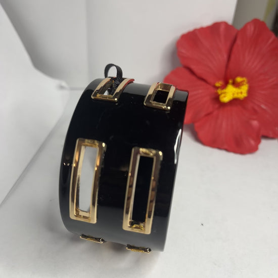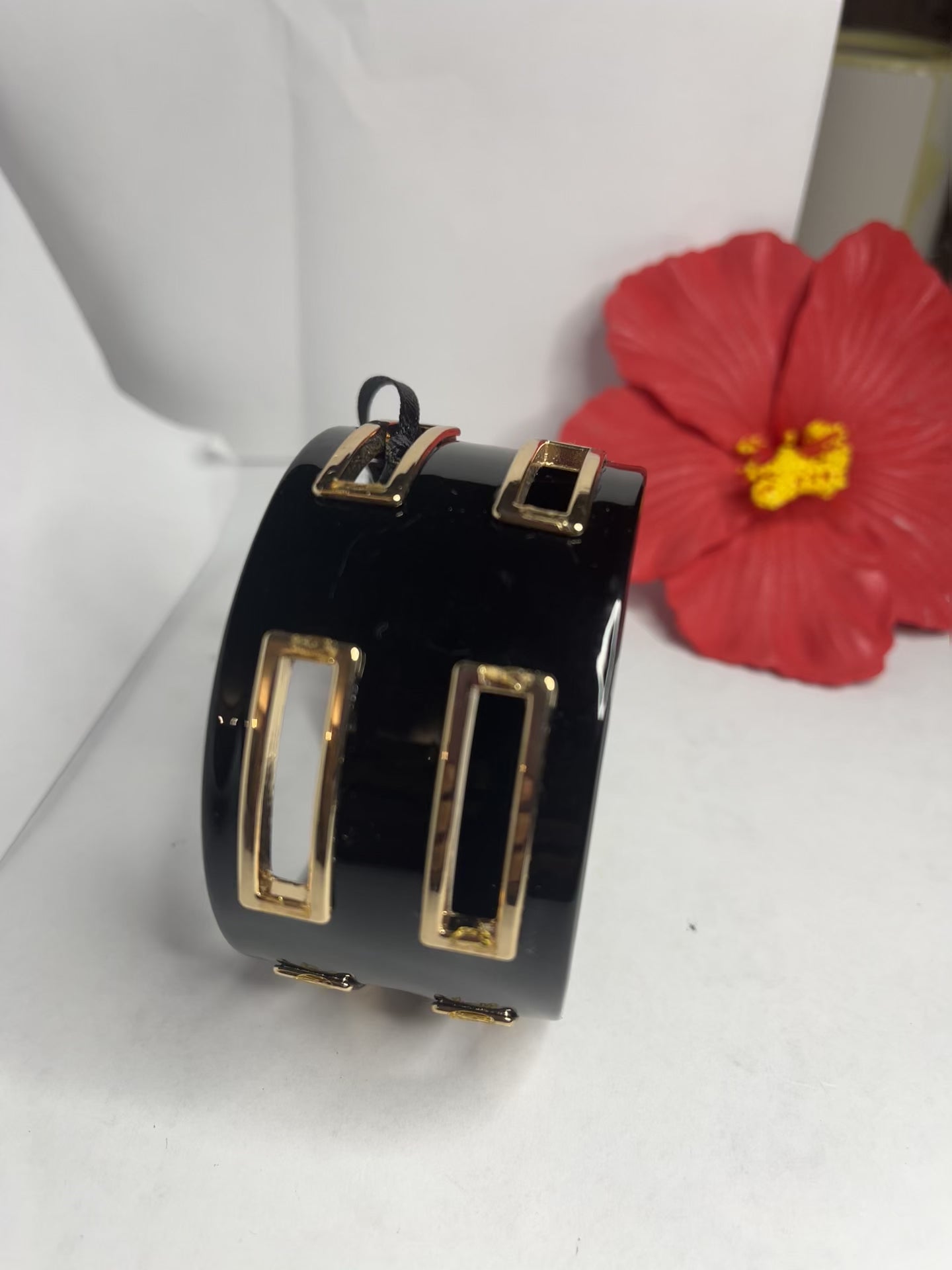 Indossa l'eleganza contemporanea con il Bracciale Golden Fusion, un capolavoro di design che fonde armoniosamente il nero sofisticato con i preziosi inserti placcati oro. Un accessorio che ridefinisce il concetto di lusso moderno al polso.