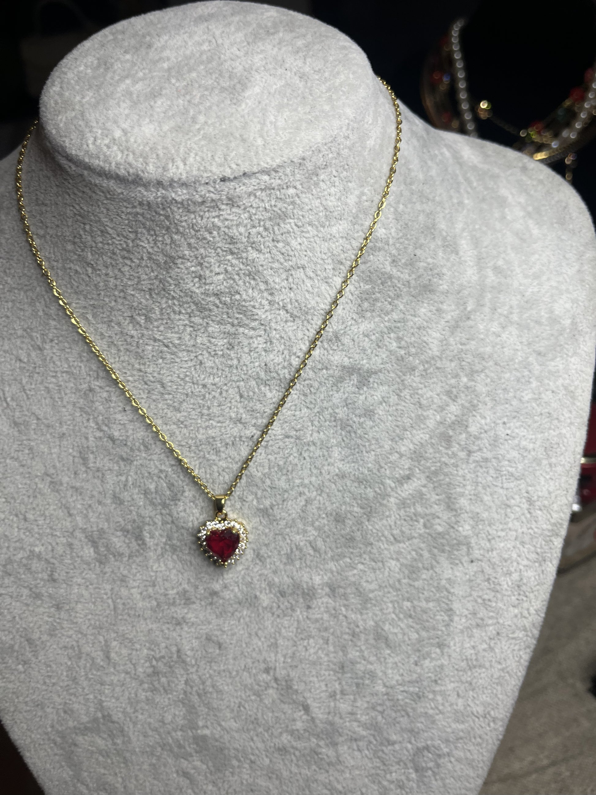 Il ciondolo a cuore con gemma sfaccettata cattura la luce con ogni movimento, mentre la delicata corona di cristalli brillanti che lo incornicia aggiunge un tocco di lusso discreto ma inconfondibile.
